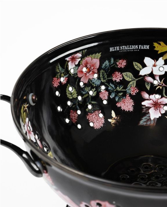 blue stallion farms 3 quart black floral colander