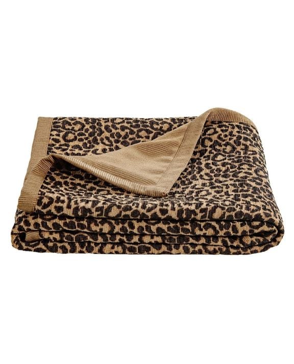 Wrap your space in the refined glamour of our Adrienne Leopard Throw. Made from gold-and-black leopard chenille, this throw adds depth, visual richness, and a touch of luxe warmth to any room. Sumptuously soft and beautifully finished with a tailored edge, it drapes effortlessly across a sofa, chair, or the foot of your bed.