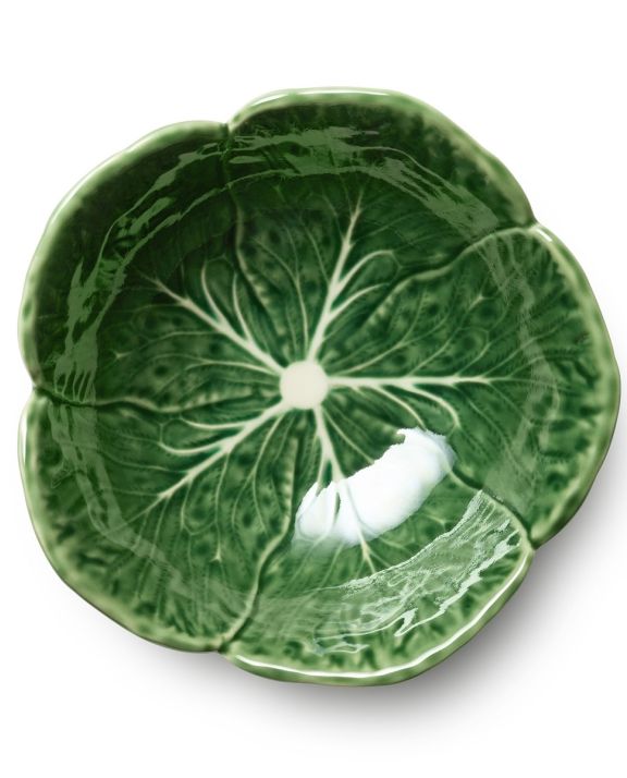 Elevate your morning routine or snack time with the Le Jardin Cabbage 3-D Cereal Bowl, an 8-inch ceramic bowl modeled after the natural shape and texture of a cabbage leaf. Featuring a high-gloss green glaze with hand-detailed white veining, this sculptural bowl feels alive with movement and earthy charm. The wide mouth and gently flared sides offer ideal proportions for cereal, fruit, yogurt, or even a comforting bowl of rice or stew. Both whimsical and refined, this piece brings a garden-fresh spirit to the table, effortlessly bridging function and artistic expression. Whether part of a full Le Jardin Cabbage collection or used as a standout accent, this bowl turns even the simplest snack into a soulful experience rooted in the elegance of nature.