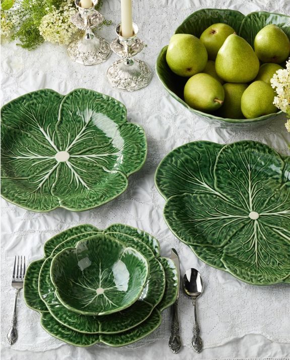 Transform your spread into a botanical showpiece with the Le Jardin Cabbage 3-D Round Platter. Measuring 13 inches in diameter, this intricately sculpted ceramic platter captures the layered curves and delicate veining of a cabbage leaf in lifelike detail. The vibrant green glaze and hand-brushed white accents add texture and depth, while the natural scalloped form lends an earthy elegance to any table setting. Perfect for hors d’oeuvres, fruit, cheese, or baked goods, this platter makes a statement whether used for serving or as a decorative centerpiece. It pairs beautifully with neutral tones or mixed greens for an abundant garden-inspired aesthetic. Bring charm, creativity, and the artistry of the vegetable patch into your home—this piece is both whimsical and timeless, perfect for those who love to serve with soul.
