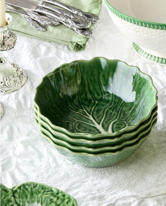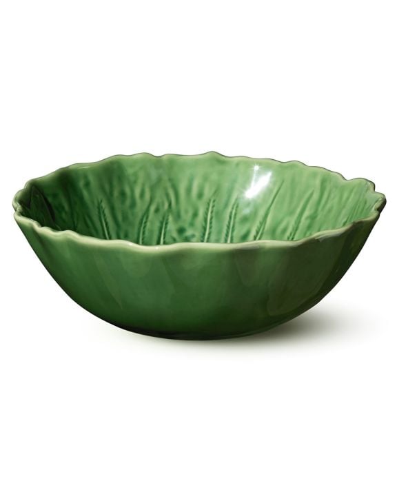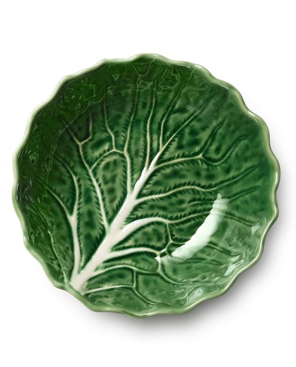 Infuse your soup service with organic elegance using the Le Jardin Cabbage 3-D Soup Bowl. Measuring 8.625 inches wide and 2.75 inches deep, this generously sized ceramic bowl is sculpted in the image of a cabbage leaf, with high-relief veins and softly curved edges that bring dimensional artistry to the table. Its lush green glaze, highlighted by crisp white accents, creates the look of a freshly plucked leaf—bringing the outdoors in with every bite. Ideal for soups, stews, pasta, or seasonal side dishes, the bowl combines beauty and practicality in equal measure. Durable and dishwasher safe, it is perfect for both everyday meals and special gatherings. Let this nature-inspired piece bring character and charm to your table while making each dish feel lovingly served and beautifully presented.