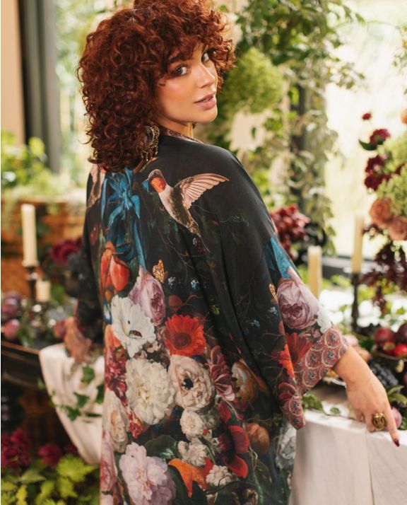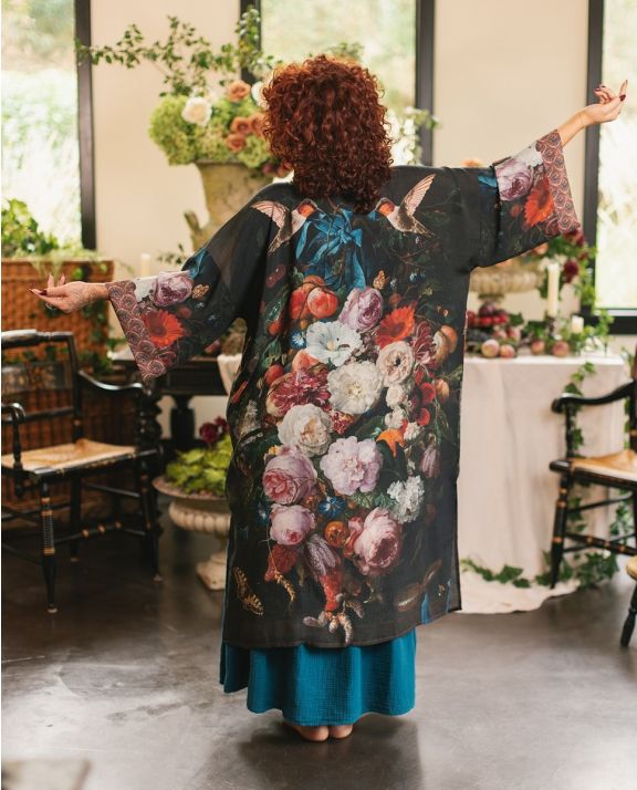 What we can dream, we can do — against all odds! Hummingbirds are tiny beings of wonder. They have the largest hearts relative to body size in the entire animal world. Symbols of hope, healing, and luck, hummingbirds are also sometimes said to represent well-wishings from loved ones — both here and departed. A flock of hummingbirds is called a glitter or a shimmer — or a bouquet! The bouquet in our exuberant print was created using a collage of breathtakingly beautiful floral paintings from the 1700’s.