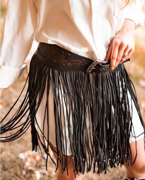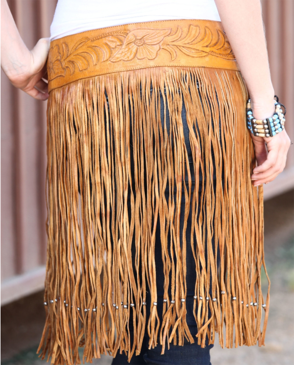 fringe hand tooled belt
