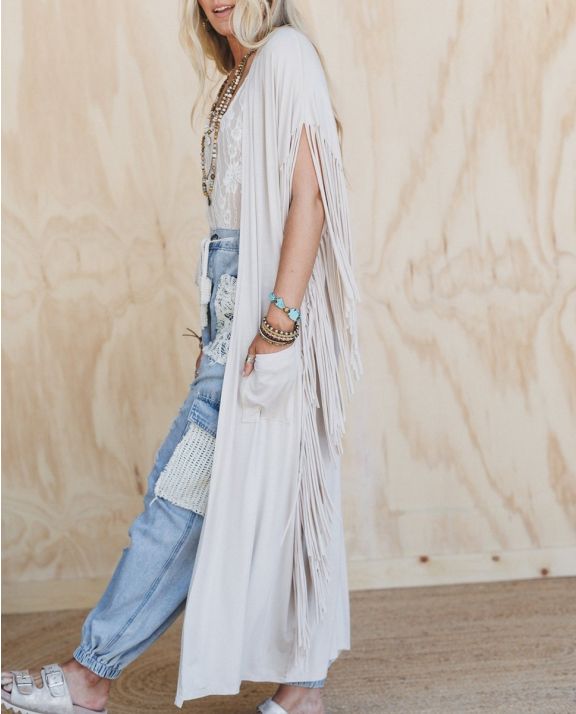 Pair this fringe kimono with any tee and jeans look for instant added cool.