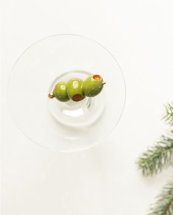 a martini olive with a whole lotta love! this adorable addition is sure to shake up your serving style. with a playful twist on a classic garnish, this mini will add flair to your next party!