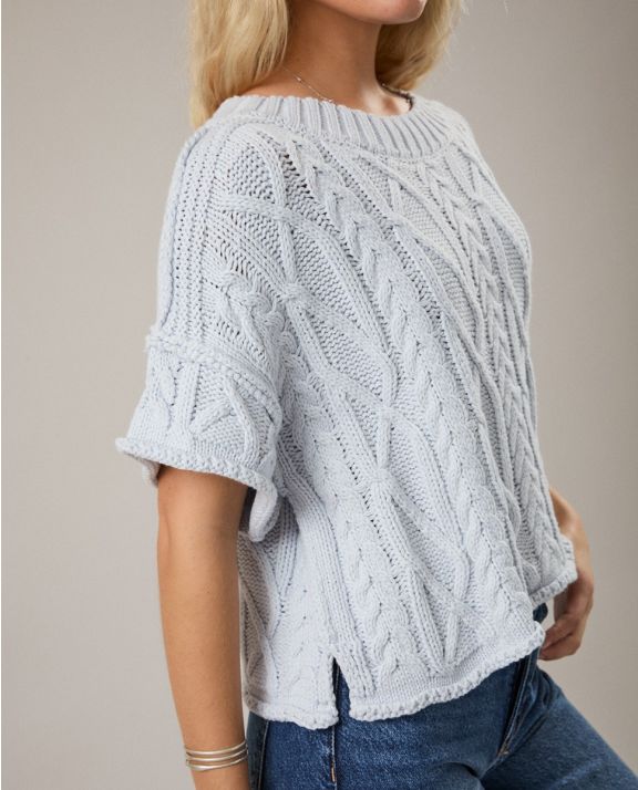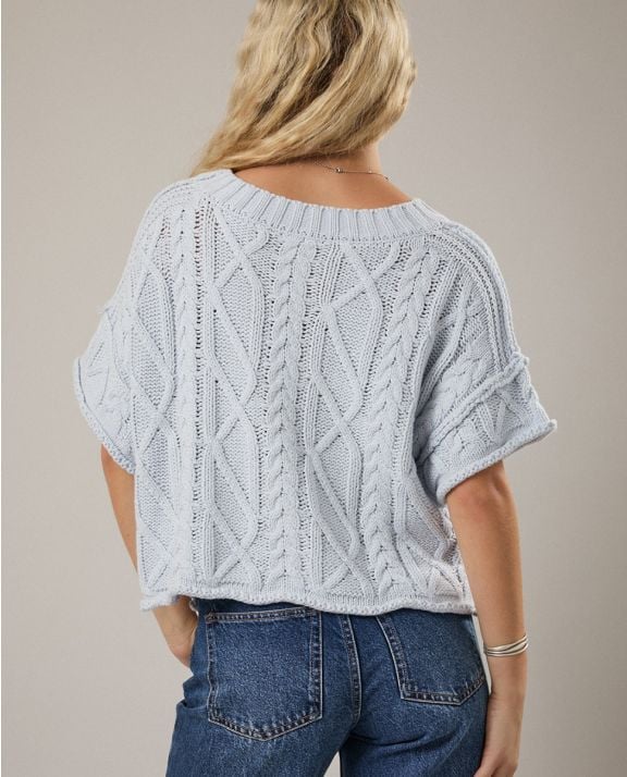 Soft, effortless, and made for sunny spring days—the Bluebell Breeze Sweater is the perfect blend of cozy and chic. Featuring a beautiful cable knit texture, relaxed short sleeves, and an easy slightly cropped fit, this lightweight sweater brings just the right touch of texture to your everyday wardrobe. The soft sky-blue hue pairs perfectly with your favorite denim, white jeans, or layered over a flowy dress for that easy boho look. From brunch dates to breezy beach nights, this one is a closet favorite waiting to happen.