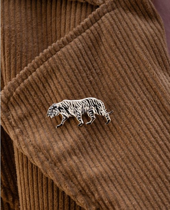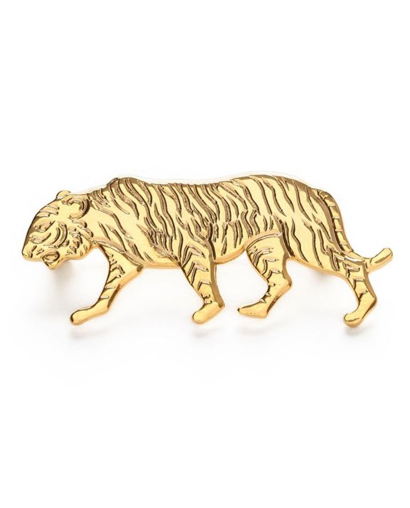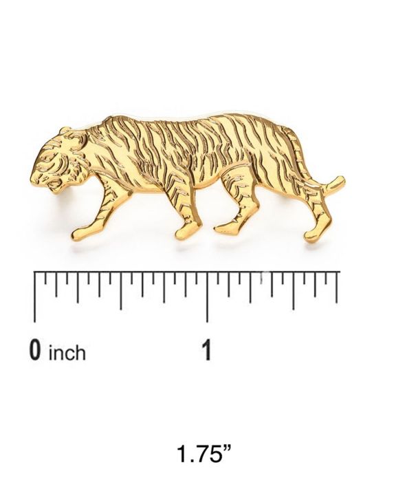 Trendy Tiger brooch is a great gift and is made with a vintage mold in the USA. Made of 14k gold plated brass and measures 1.5".