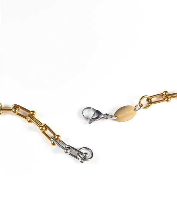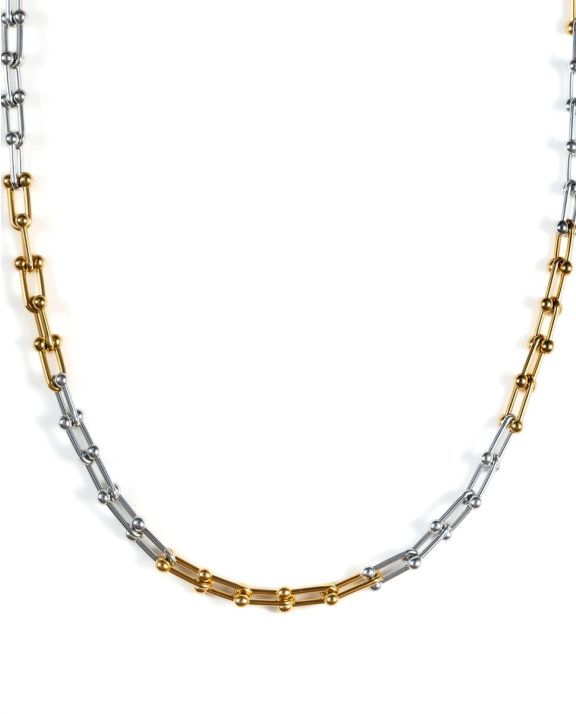 Elevate your everyday look with this stunning waterproof two-tone chain necklace—the perfect blend of style and durability. Featuring a chic mixed-metal design that transitions seamlessly from day to night, this piece won't tarnish, fade, or let you down. Whether you're hitting the beach, the gym, a brunch or a party! Simply living your best life, this necklace stays as fresh as you do. Layer it, wear it solo, or gift it to someone who appreciates jewelry that works as hard as they do. Timeless elegance meets practical sophistication.